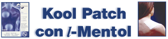 El parche frío (Kool Patch) puede ser recortado en varios tamaños según la necesidad, es fino, flexible y discreto. Pueden ser aplicados sobre cualquier parte del cuerpo discretamente y debajo de la ropa. El gel del parche contiene 0,5 g de l-mentol, que produce el efecto frío y calmante, desprendiendo un agradable aroma.