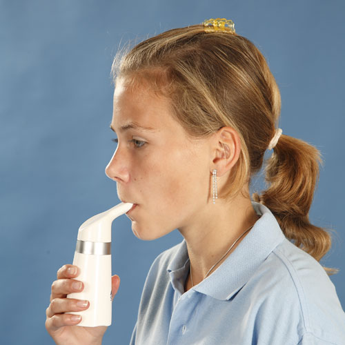 Respire con normalidad mientras use el dispositivo. Coloque la boquilla entre sus labios, inhalando suavemente por la boca y exhalando por la nariz. NO VUELVA LLEVAR LA RESPIRACIÓN DE EXHALACIÓN AL DISPOSITIVO.